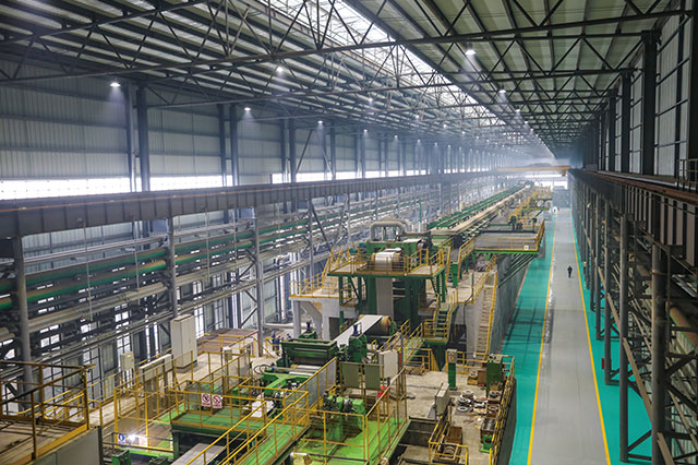 公司擁有1420酸洗冷軋聯合機組(PL-TCM)一套,機械由中國一重及中冶南方共同設計制造,電氣采用上海寶信軟件自動化控制系統,機組設備配置合理,整體裝備達到國內一流水平。機械設備涵蓋激光焊接設備、噴射紊流式酸洗設備、高精度雙塔式切邊設備(SMS)、五機架竄輥式UCM連軋機、新型回轉式雙卷筒卷取機,軋機電氣采用秒流量控制系統。