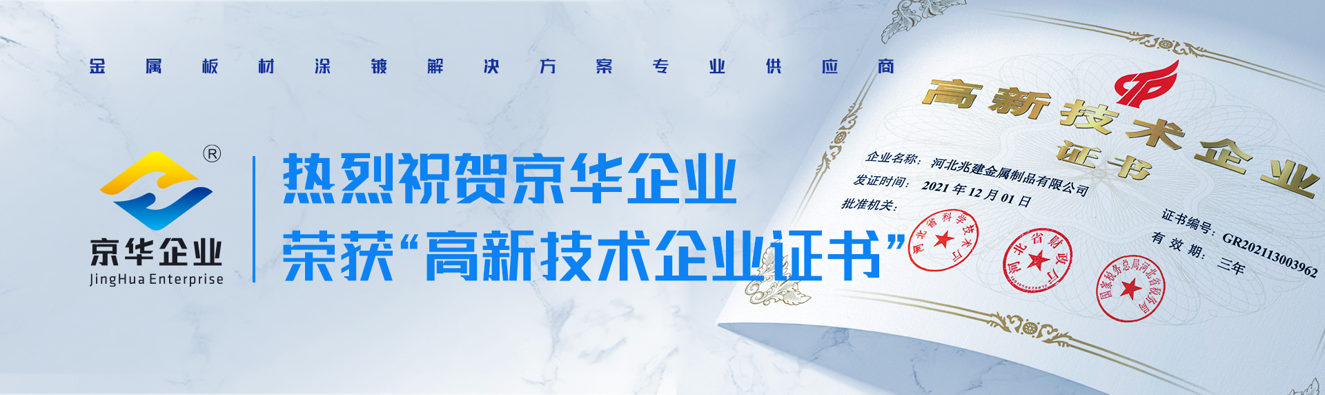 招標報名通知書 河北兆建金屬制品有限公司始建于2010年11月,注冊資金1億元人民幣,占地面積70萬平方米,總投資為25.9億元,年生產能力320萬噸(其中:軋硬產品120萬噸、鍍鋅產品120萬噸,彩涂產品80萬噸)。專業生產冷軋板、鍍鋅板、鍍鋁鋅板、印花板、冷覆膜板、熱覆膜板、建筑彩涂板、家電彩涂板。選用設備力求高起點、高水平和高質量,打造國際一流水平的設備生產線,具備生產周期短、效率高、產品精度高、質量好和能耗低等優點。